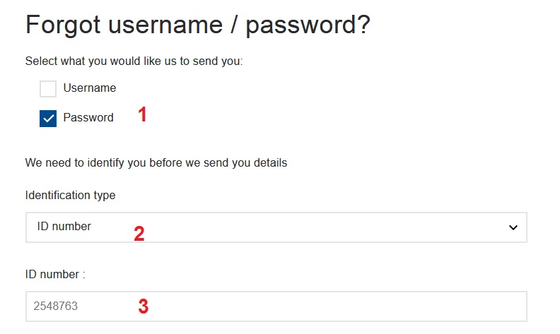 Step 1 : Select Identification type – ID Number Or Passport Number