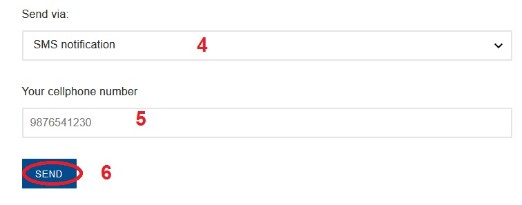 Step 4 : Enter Your Cellphone Number (If Select SMS Notification) Or Enter Your mail address (If Select Email Notification )