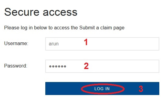 To View & Track your Claims you have to Login by providing your Username & Password