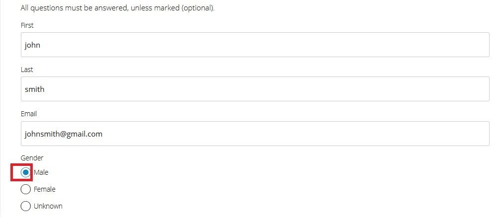 2.4 Select Gender*[Male/Female/Unknown]