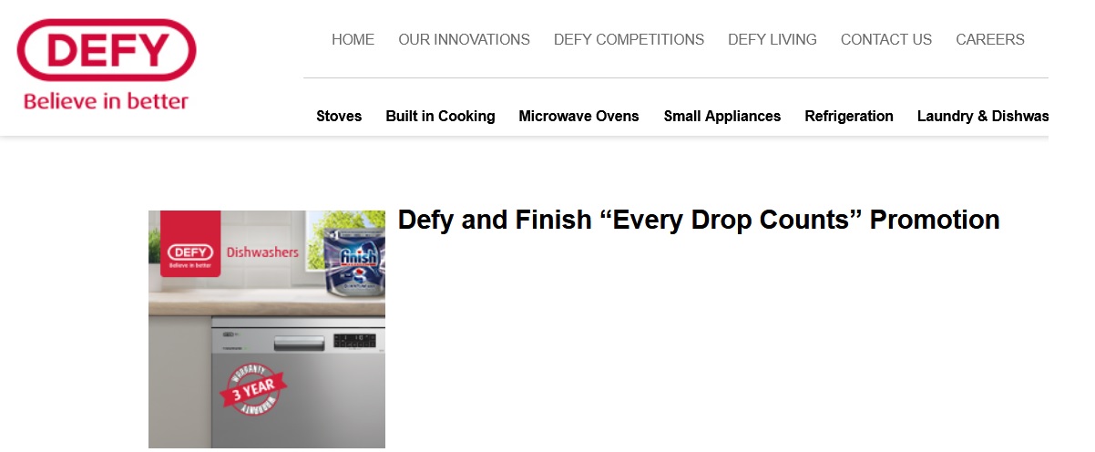 ** Defy Appliances (Pty) Ltd (“Defy”), Finish, Reckitt Benckiser South Africa (Proprietary) Limited and its subsidiaries are collectively referred to as the “Promoters” in respect of the Promotion for purposes of these Terms and Conditions.