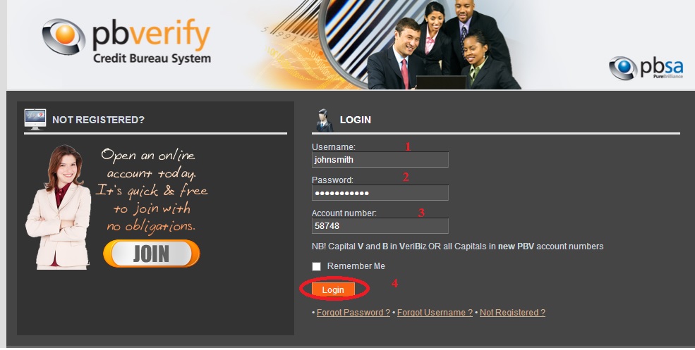 NB! Capital V and B in VeriBiz OR all Capitals in new PBV account numbers