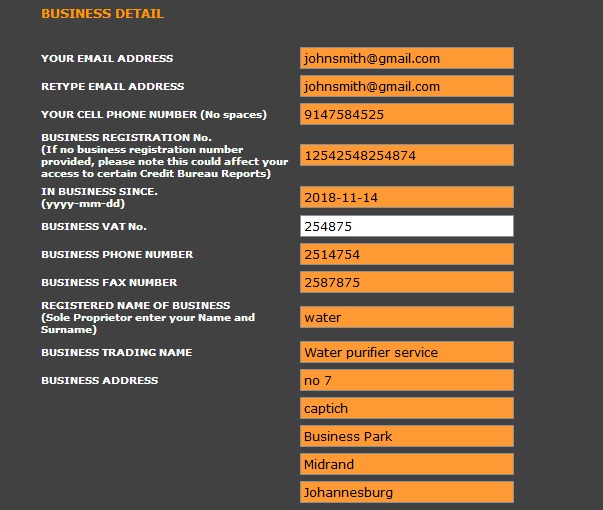 ** It is important that you take care when entering this information, it will be used in accordance with the National Credit Act (NCA)