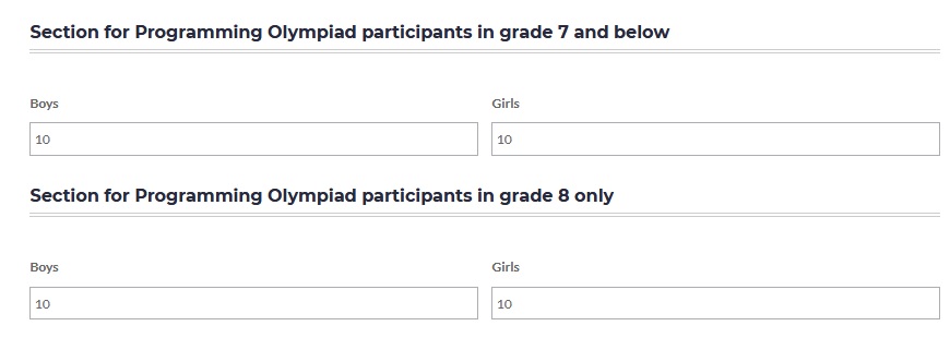 Step 9 : Enter Number of participating boys in grade 8 and below