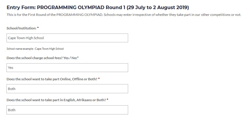 For the Second Round and also for the Final Round the languages are more restricted. Selected participants are entered into the International Olympiad in Informatics. The questions are available in Afrikaans and English.