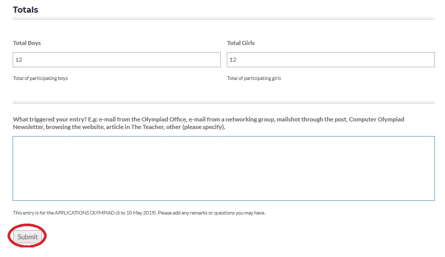** This is for the First Round of the Programming Olympiad. Schools may enter irrespective of whether they take part in our other competitions or not.