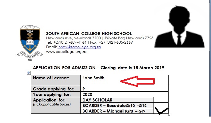 Application For Admission – Closing date is 15 March 2019. Please read the Admission Policy of South African College High School (the “School”) before submitting this application form.