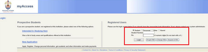 University of Venda myAccess Student Portal : univenien.univen.ac.za