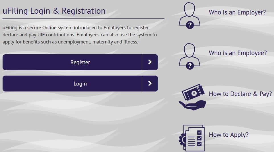 uFiling is a secure Online system introduced to Employers to register, declare and pay UIF contributions. Employees can also use the system to apply for benefits such as unemployment, maternity and illness.