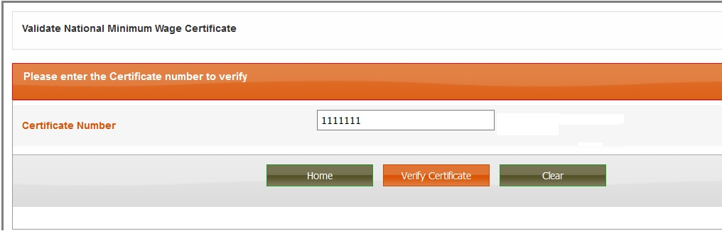 Please enter the Certificate number to verify or Validate National Minimum Wage Certificate