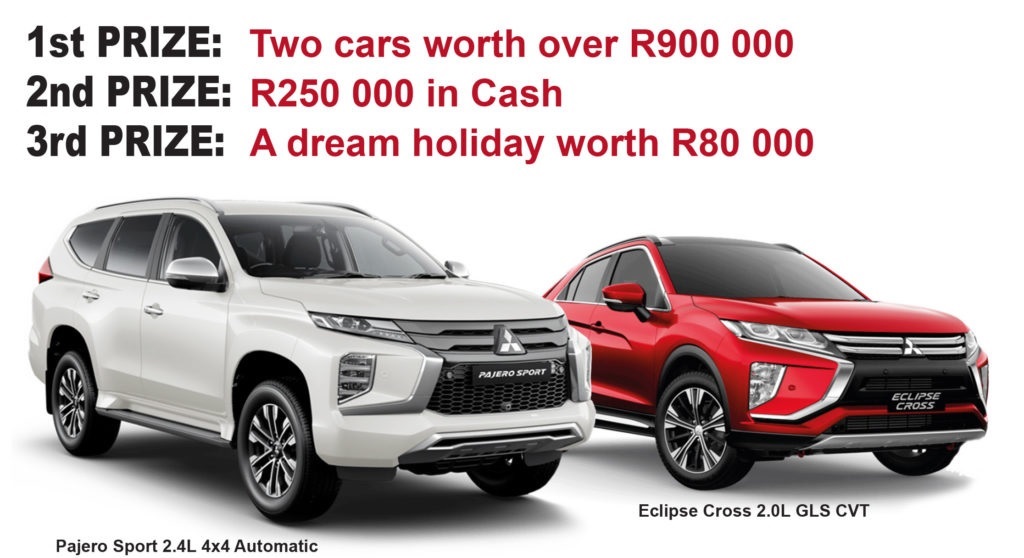 ** First Prize – Two Mitsubishi vehicles: A Pajero Sport 2.4L 4X4 Automatic and the Eclipse Cross 2.0L CVT valued at over R900 000,00
