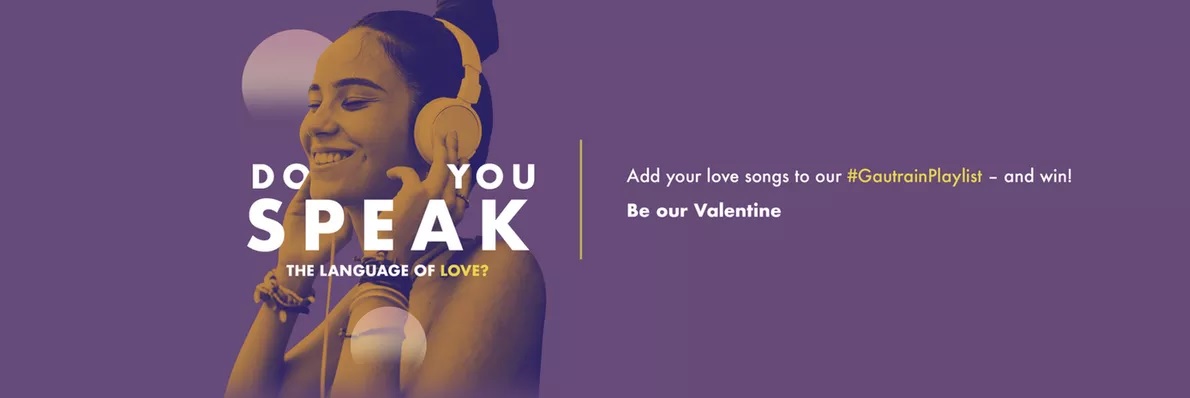 In order to enter and be considered for a prize, participants must comment on the #GautrainPlaylist posts on the Gautrain’s social media platforms (Twitter, Facebook and Instagram) with their favourite love song, using the #GautrainPlaylist hashtag.