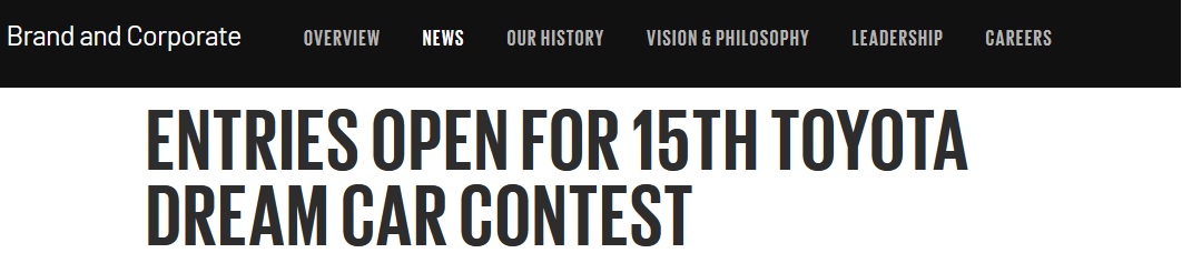 The Toyota Dream Art Contest, which is for children under the age of 8 years; 8 to 11 years and 12 to 15-year-olds.