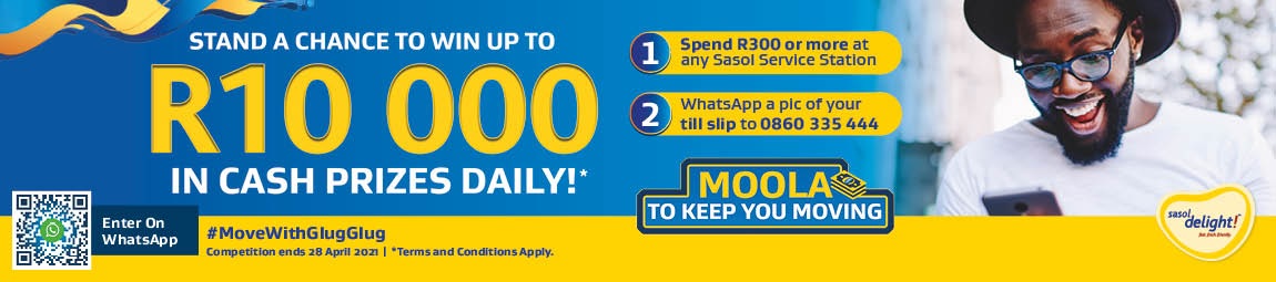All you have to do to enter is connect with us on our WhatsApp line https://api.whatsapp.com/send/?phone=27860335444&text=Hi&app_absent=0 and send us a pic of your till slip. There’s R10,000 up for grabs every day and you could WIN anything from R1,000 to R10,000 instantly when you fill up, fuel up and stock up. Every day is a chance for you to #MoveWithGlugGlug and stand a chance to WIN!
