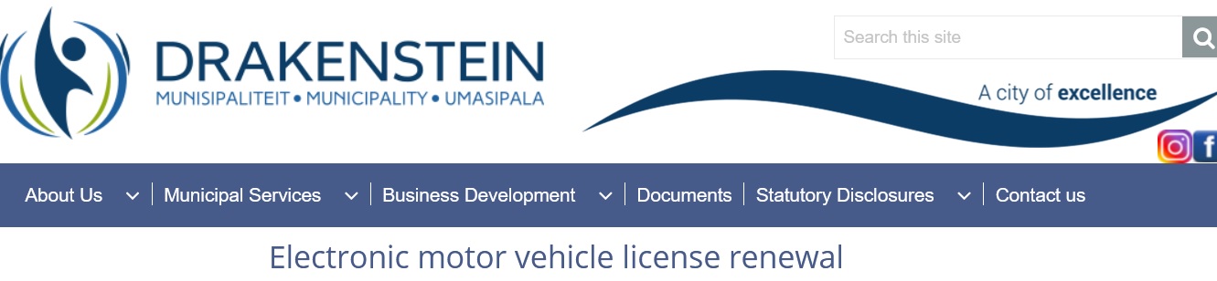 Website : http://ww1.drakenstein.gov.za/sites/dw/SitePages/Electronic-motor-vehicle-license-renewal.aspx