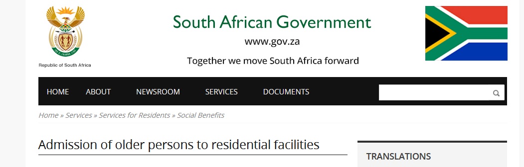 gov.za Applying For Admission to an Older Persons’ Residential Facility : Government of South Africa