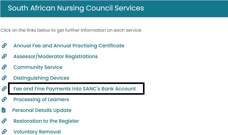 South African Nursing Council prefers all payments to be made into its Reference Deposit Bank Account.