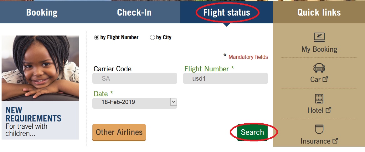 ** Although these flights may have an SA flight number, flight status updates can only be received by checking directly with the operating airline.