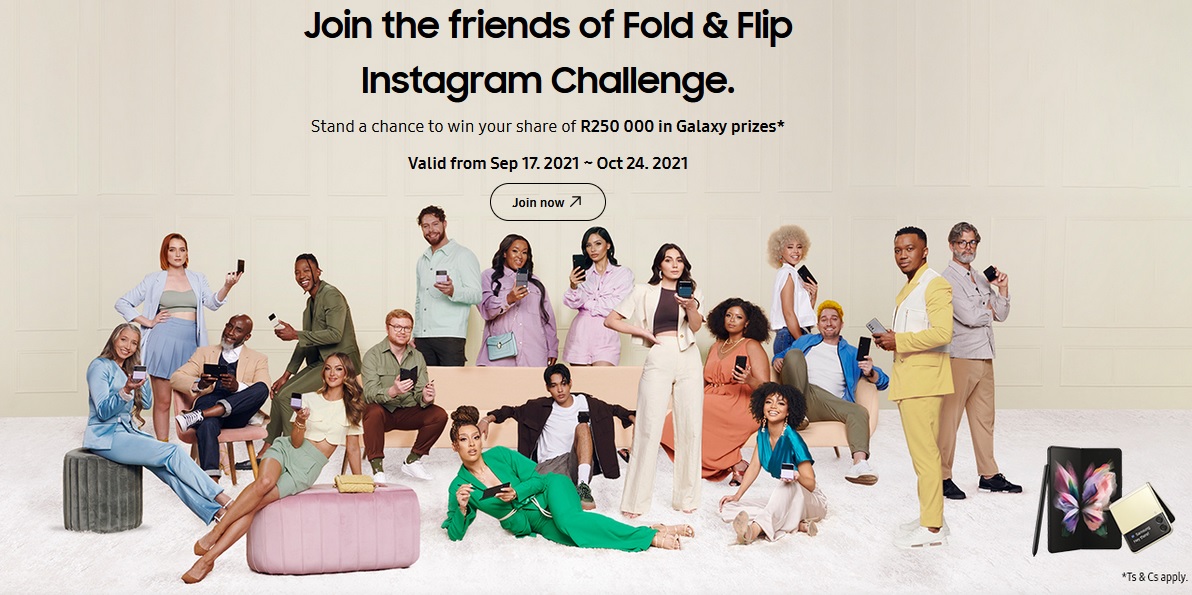 Unfolding new possibilities with our Friends of Fold & Flip. Help us unfold the new Galaxy Z Fold3 and Z Flip3 5G in our 5-week Instagram challenge and stand a chance to win your share of R250 000 in Galaxy Prizes*