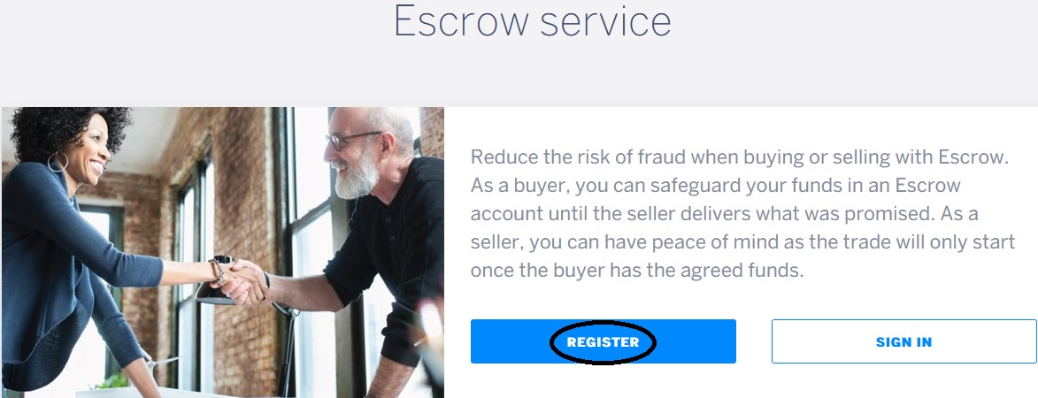 To transact using Escrow, you will need to complete a registration process which will require some information about you. Additional information will be required if you are registering to transact as a business.