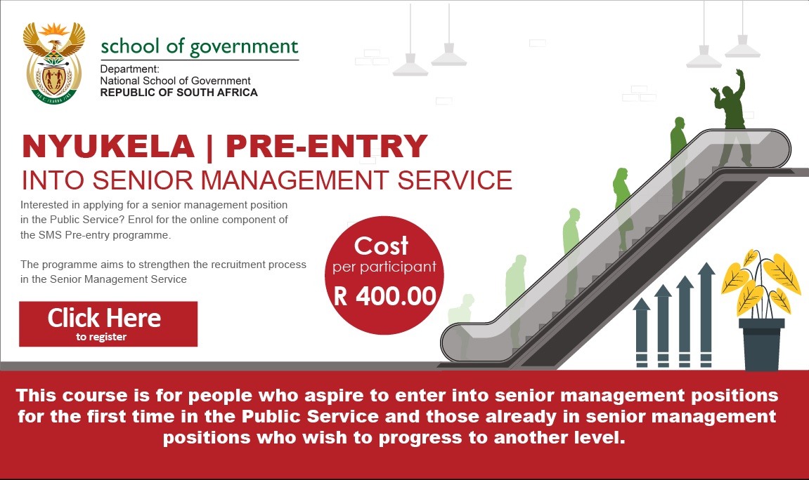 The course is applicable to public servants and citizens who wish to apply for a position in the Senior Management Service (SMS) of the Public Service. To strengthen the recruitment process at Senior Management Service level and to ensure that senior managers are competent in their job role.