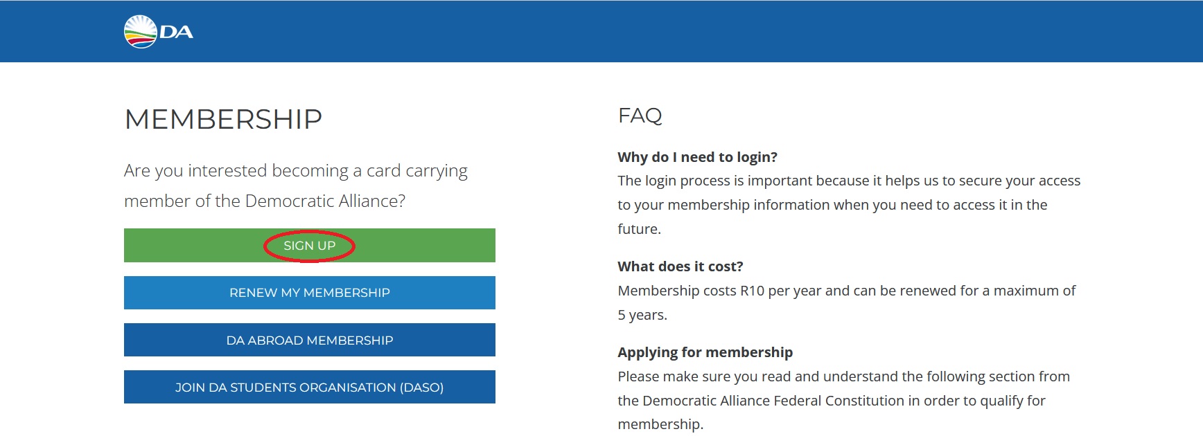 FAQ On Democratic Alliance Membership