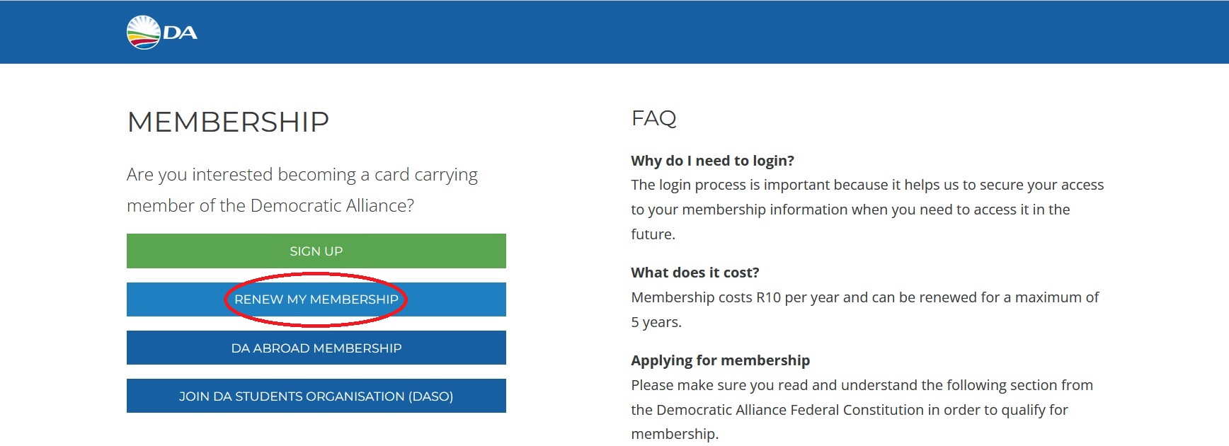 Democratic Alliance Membership Application & Renewal : da.org.za