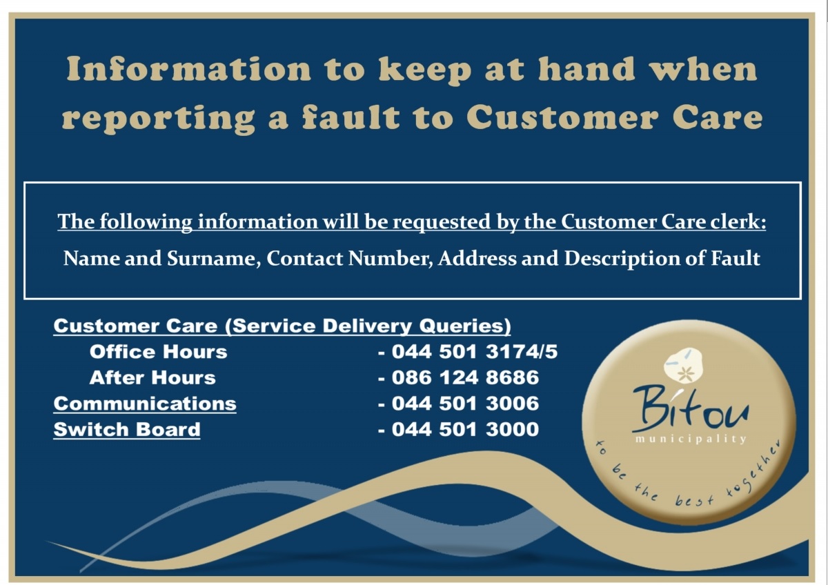 Bitou Municipality Customer care involves putting systems in place to maximise our customers’ satisfaction with our business.