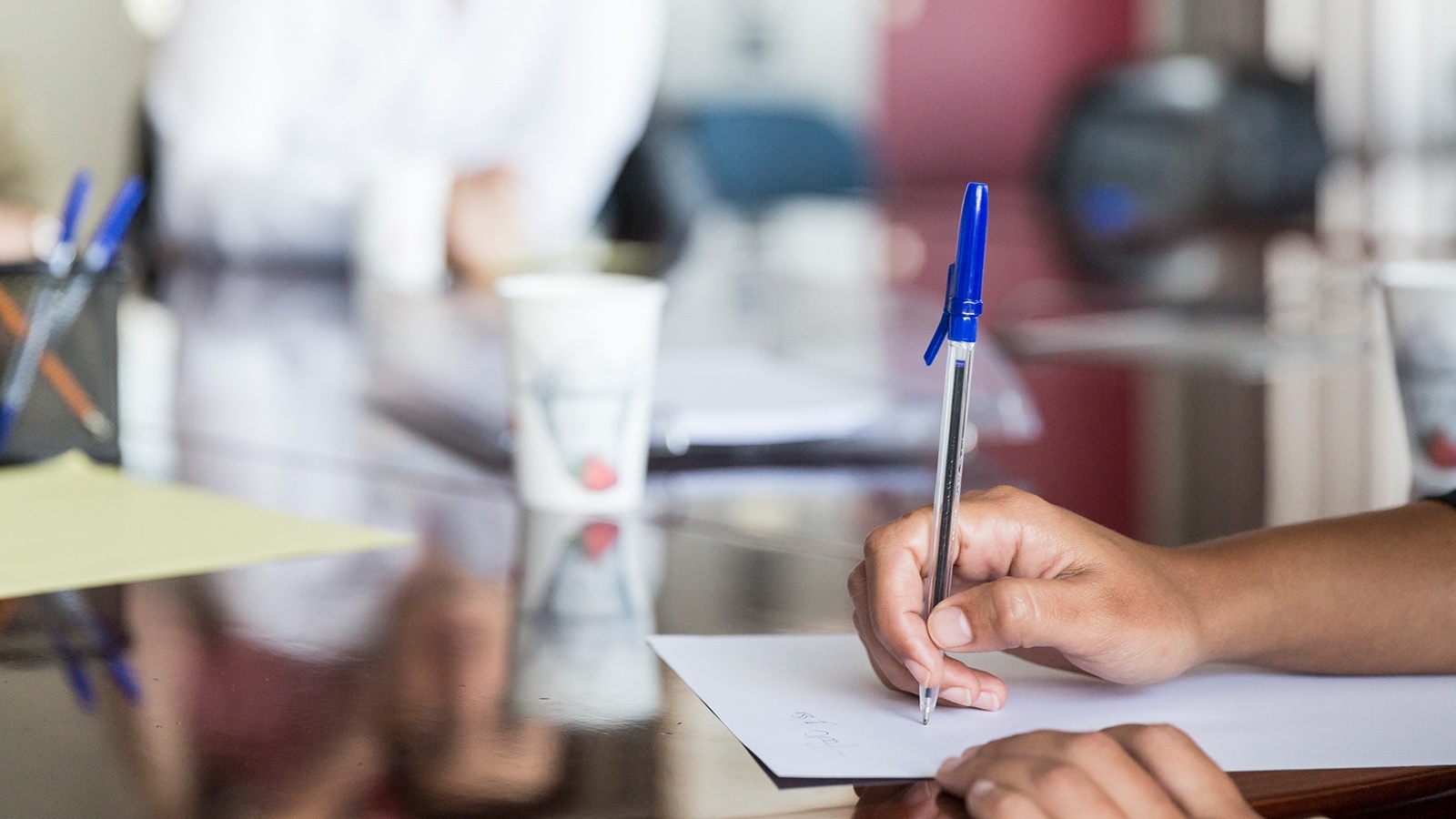 Student hand writing down notes