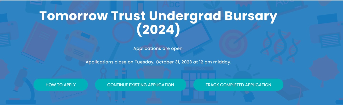 ** Tomorrow Trust Undergrad Bursary (2024) closes: Tuesday, October 31, 2023 at 12 midday