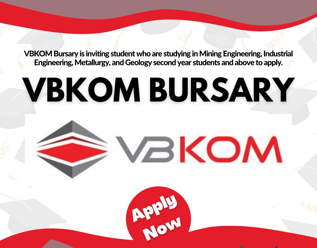 Should you wish to apply, please use the Email account bursaries@vbkom.co.za. With supporting documents of motivation letter, Application form and supporting documents. Application Reference should be VBKOM-Bursary 2024_ your university_ your discipline (e.g., VBKOM-bursary 2024__University of Pretoria_ Mining Eng.) Successful candidates will be contacted before 12 February 2024 for interviews. If you are not contacted by then, consider your application as being unsuccessful. For enquiries contact VBKOM on 012 654 0004