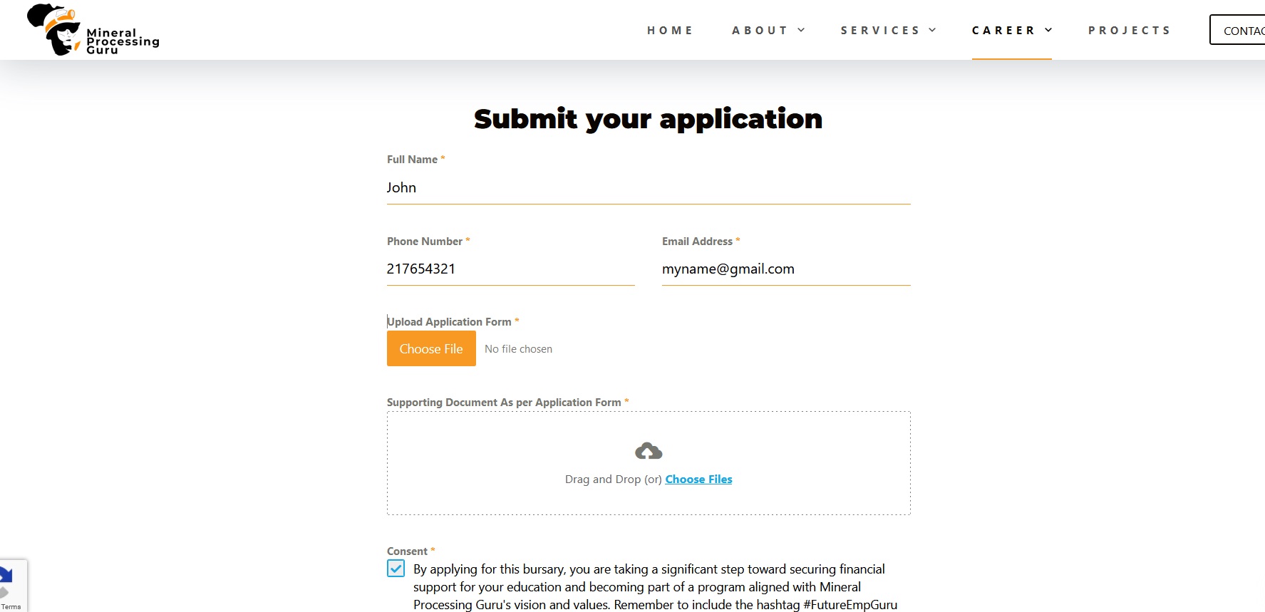 Applicants for the Mineral Processing Guru Bursary Program are required to submit the following documents in support of their application: