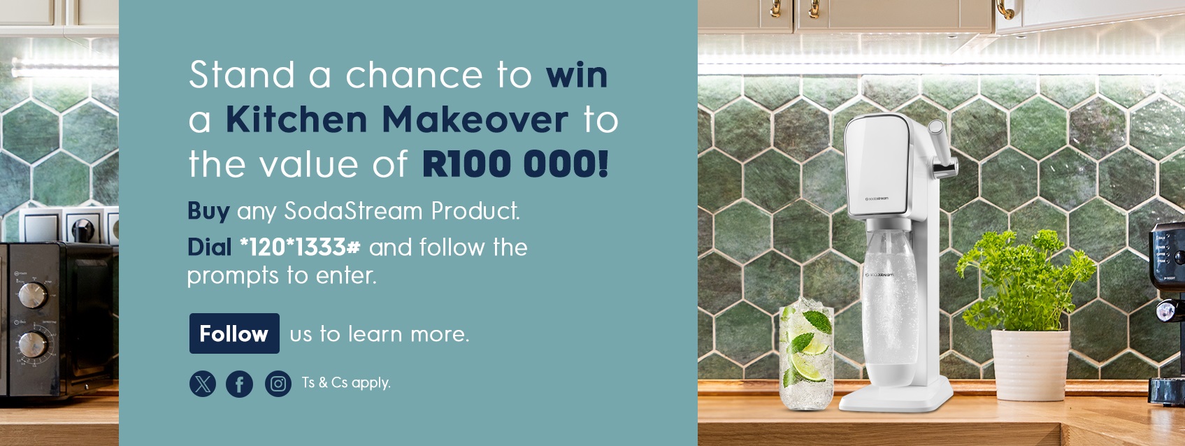 SodaStream Kitchen Makeover Competition 2024 is conducted by SodaStream South Africa. The promotional competition is open to all South African residents residing in South Africa in all nine (9) Provinces, To participate in this competition, Buy ANY SodaStream Participating products, Dial *120*1333# and follow the prompts to Stand A Chance To Win Yourself a Kitchen Makeover worth R100 000. This competition is open from 01st March 2024 and ends at midnight on 30th April 2024.