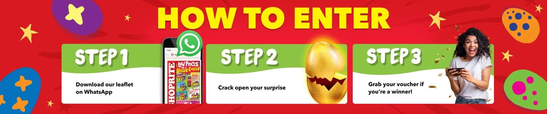 2. Follow the prompts, download the Shoprite Easter leaflet, and stand a chance to win a Shoprite store Voucher to the value of R20 (twenty Rand), R50 (Fifty Rand), R100 (one hundred Rand) or R1000 (one thousand Rand)