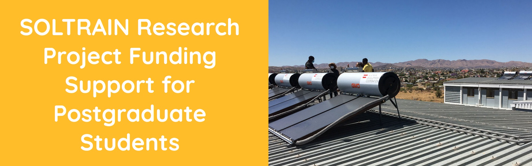 Postgraduate students from Botswana, Lesotho, Namibia, South Africa and Zimbabwe who are broadly engaged in research on solar heating, drying and cooling, heat pumps, heat recovery and energy efficiency are invited to apply for funding in support of their research. In order to apply for financial support, you will first be required to create a SOLTRAIN Student Account on the SOLTRAIN website. Once your account has been created and your email has been verified, you will be able to log in to the website and start the online application process. All applications need to be submitted by 16th May 2024.