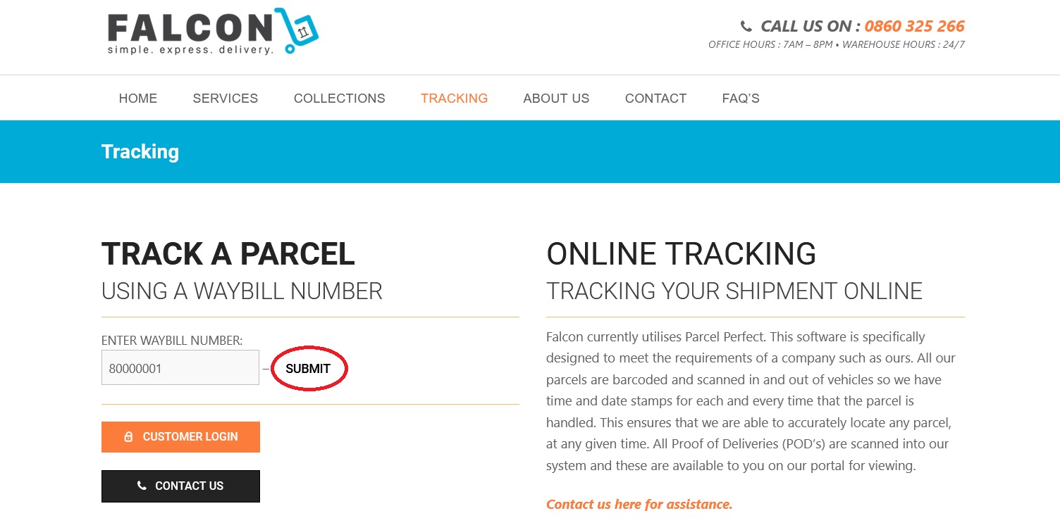 If you do have a Waybill number but can not retrieve a result kindly contact us here: 0860 325 266