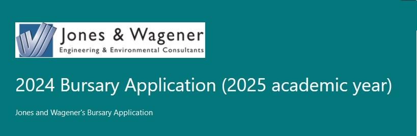 Jones & Wagener is pleased to offer a limited number of bursaries for South African BEng / BSc Civil Engineering, Geology, Geochemistry and Environmental students studying at South African Universities. The bursaries will cover as a minimum university tuition fees but could also include accommodation and a limited textbook allowance. Current South African tertiary students and Grade 12 scholars are invited to submit applications. The closing date for applications is 31 July.