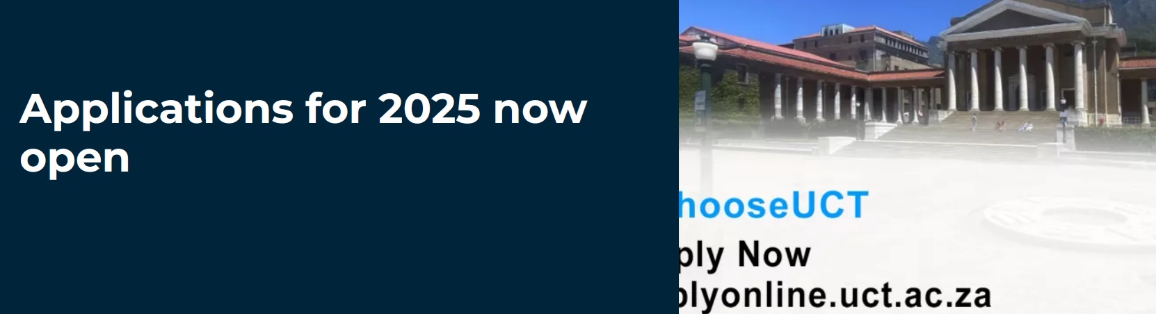 Seize the opportunity to join Africa’s leading university. Applications for admission to study at UCT in 2025 for all programmes are now open. Applications opened on 2 April 2024. The closing date for applications for undergraduate study at UCT in 2025 is 31 July 2024. We will not consider applications received after this date.