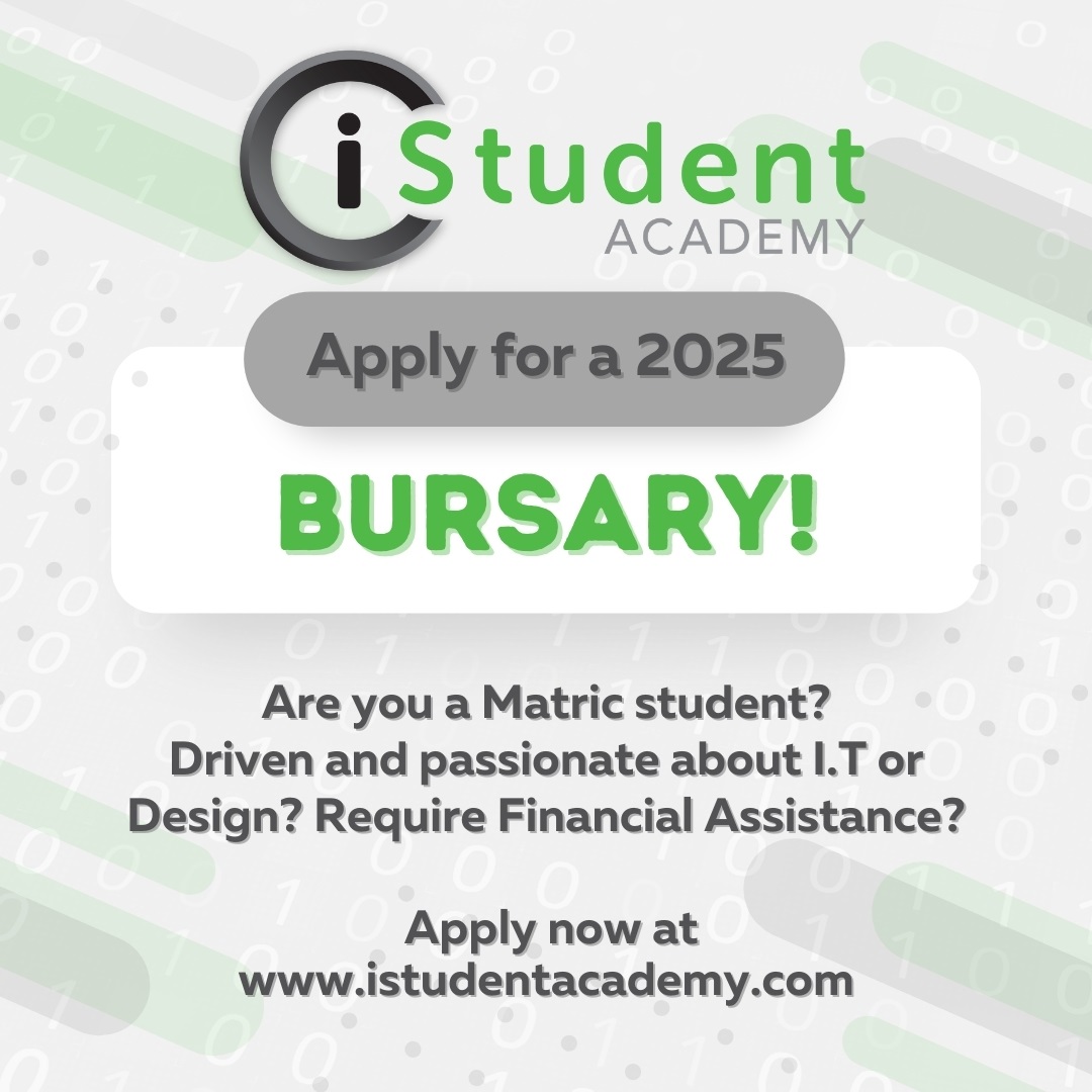 ** The winners of these bursaries must be available to study full time, as per the academic schedule provided by iStudent Academy, for the entire academic year of 2025 (if required), at the applied for iStudent Academy Campus, as stipulated on the application form.