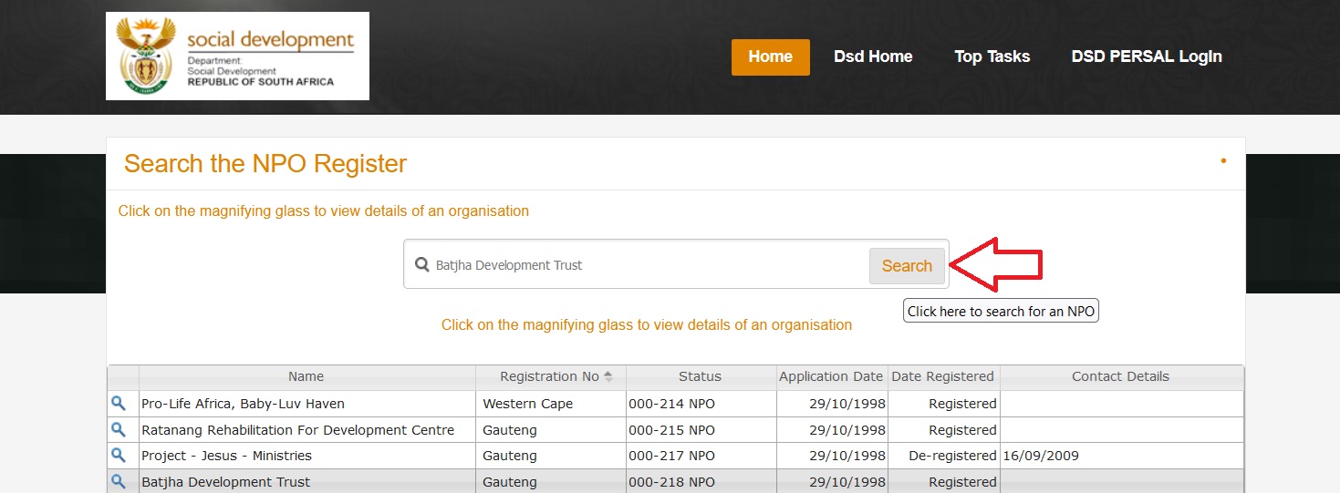 Search NPO Register Here : https://www.npo.gov.za/PublicNpo/Npo/Search