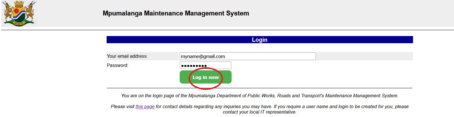 To login to Mpumalanga Maintenance Management System, Follow the below steps