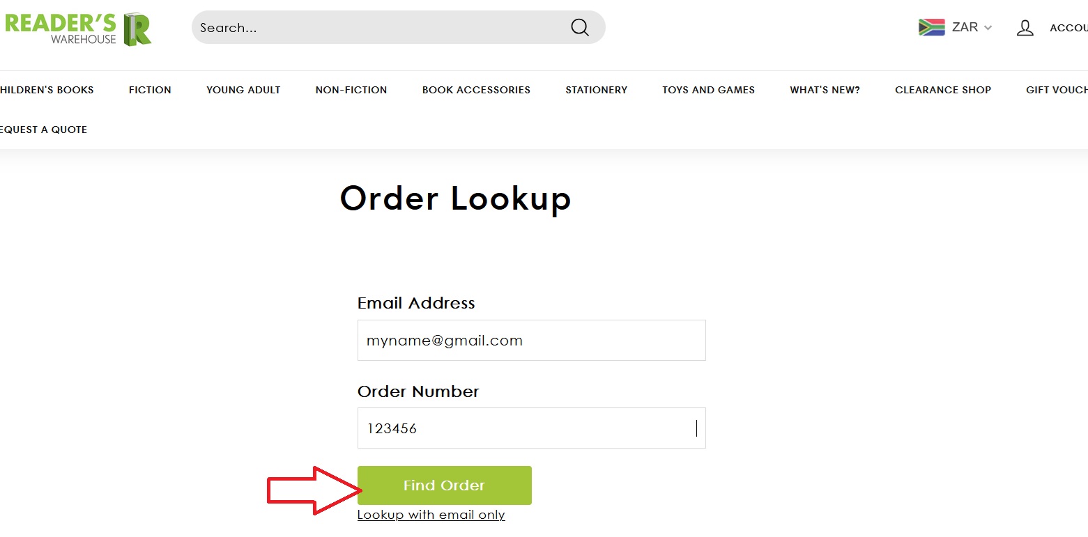 Step-1 : Go to the link https://www.readerswarehouse.co.za/pages/order-lookup
