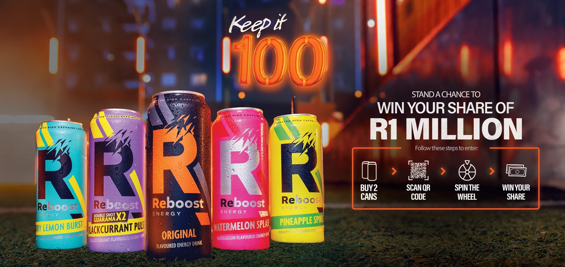 Reboost Keep It 100 Promo Competition 2025 is run by Reboost on behalf of The Beverage Company (Pty) Ltd. This Competition is open to all citizens and legal residents of the Republic of South Africa of 18 years and older. Purchase any 2x Reboost products from any participating retail outlet and follow the instructions to enter. Participate and win Instant Airtime, Cash and Monthly Grand Prizes. Last date of Competition is 31st December 2025.
