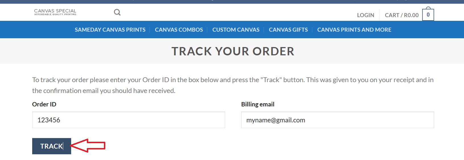 Step-1 : Go to the link https://canvasspecial.co.za/track-order/?
