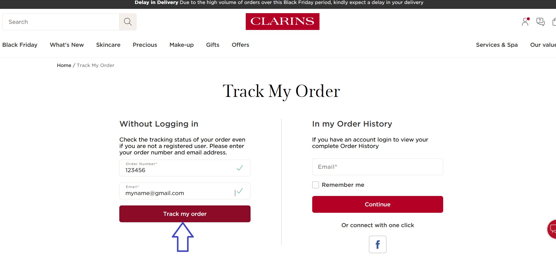 Step-1 : Go to the link https://www.clarins.co.za/track-your-order?