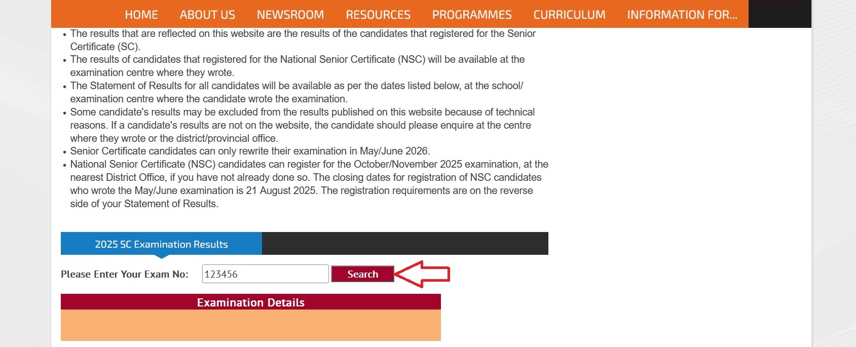 Step-1 : Go to the link https://www.education.gov.za/MatricResults/ExamResults/tabid/175/Default.aspx