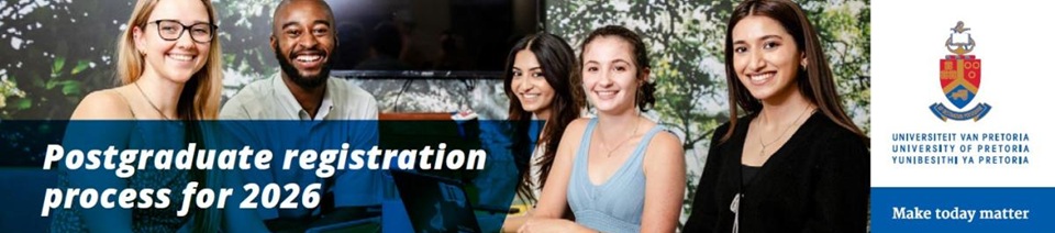 As a postgraduate student at the University of Pretoria, you need to complete the registration process before your honour’s degree, master’s degree, or doctorate starts . This is a very important step to ensure you have access to annual academic course material, the UP student portal and other essential information. Remember to read your faculty yearbook as well during the registration process, as it contains more specific faculty rules and regulations.