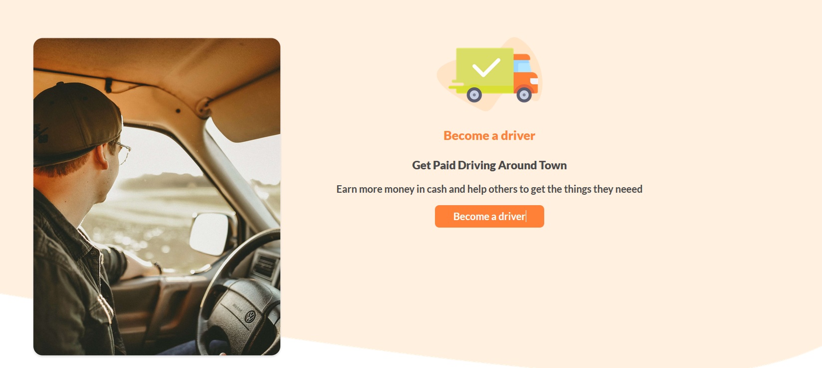 Become a driver and Get Paid Driving Around Town. Earn more money in cash and help others to get the things they neeed. Our flexible working hours will give you the freedom to decide your availability time based on your needs. Earn more money for every order that you have completed.