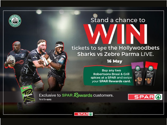 SPAR Rewards Robertsons Competition 2026 is conducted by Unilever South Africa (Pty) Ltd. The Competition is open to all citizens of South Africa. Purchase any two (2) Robertson Braai Spice products from participating SPAR stores (KZN only) and swipe your SPAR Rewards Card at checkout, or purchase via the SPAR 2U App, to receive an automatic entry into the competition One (1) winner will receive tickets to the Sharks vs Zebre rugby match taking place on 16 May 2026 at Kings Park Stadium, Durban (Prize). Last date of Competition is 10th May 2026.