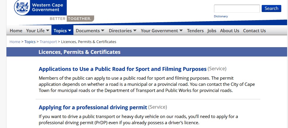 Website : https://www.westerncape.gov.za/service/professional-driving-permit-applications